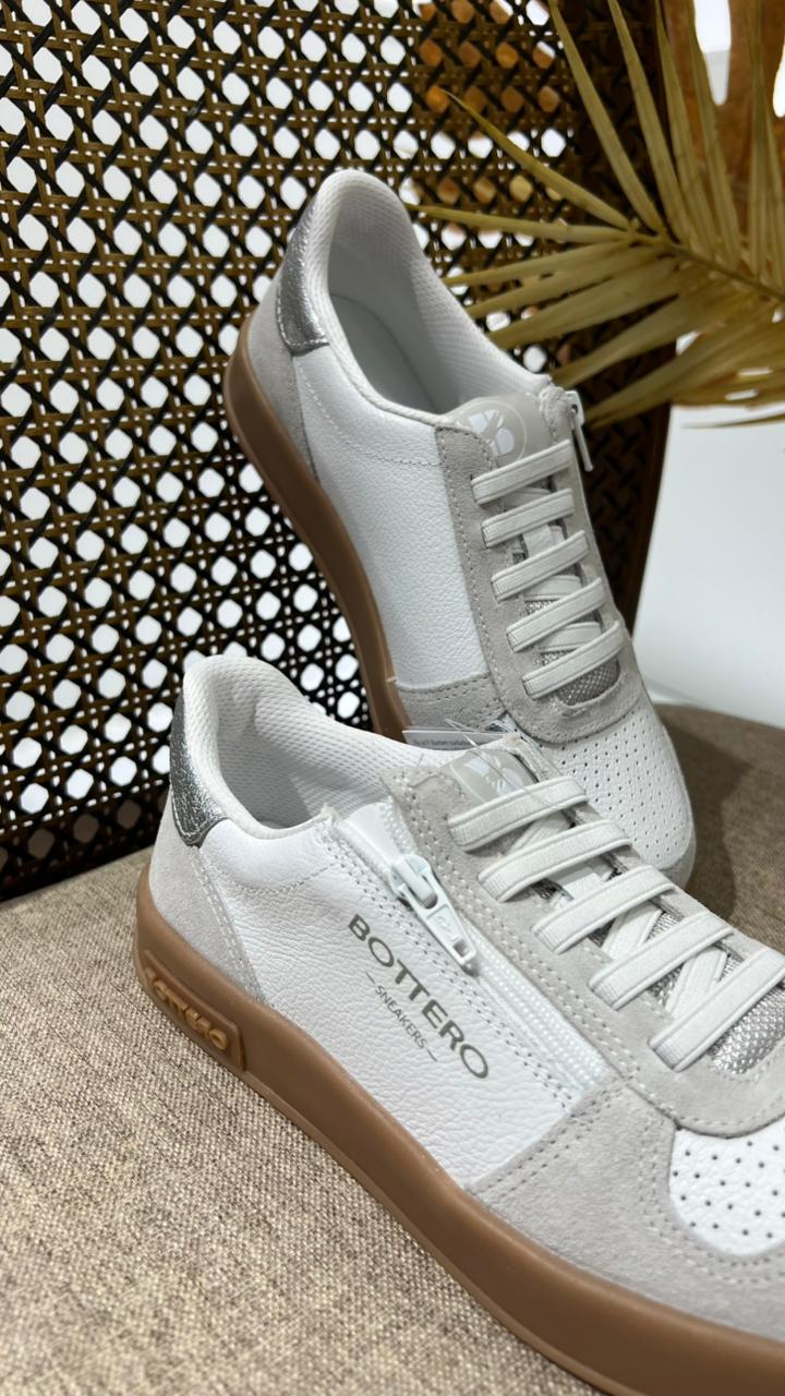 TÊNIS EM COURO COM CADARÇO EM ELÁSTICO E ZÍPER LATERAL PARA MELHOR CALCE.